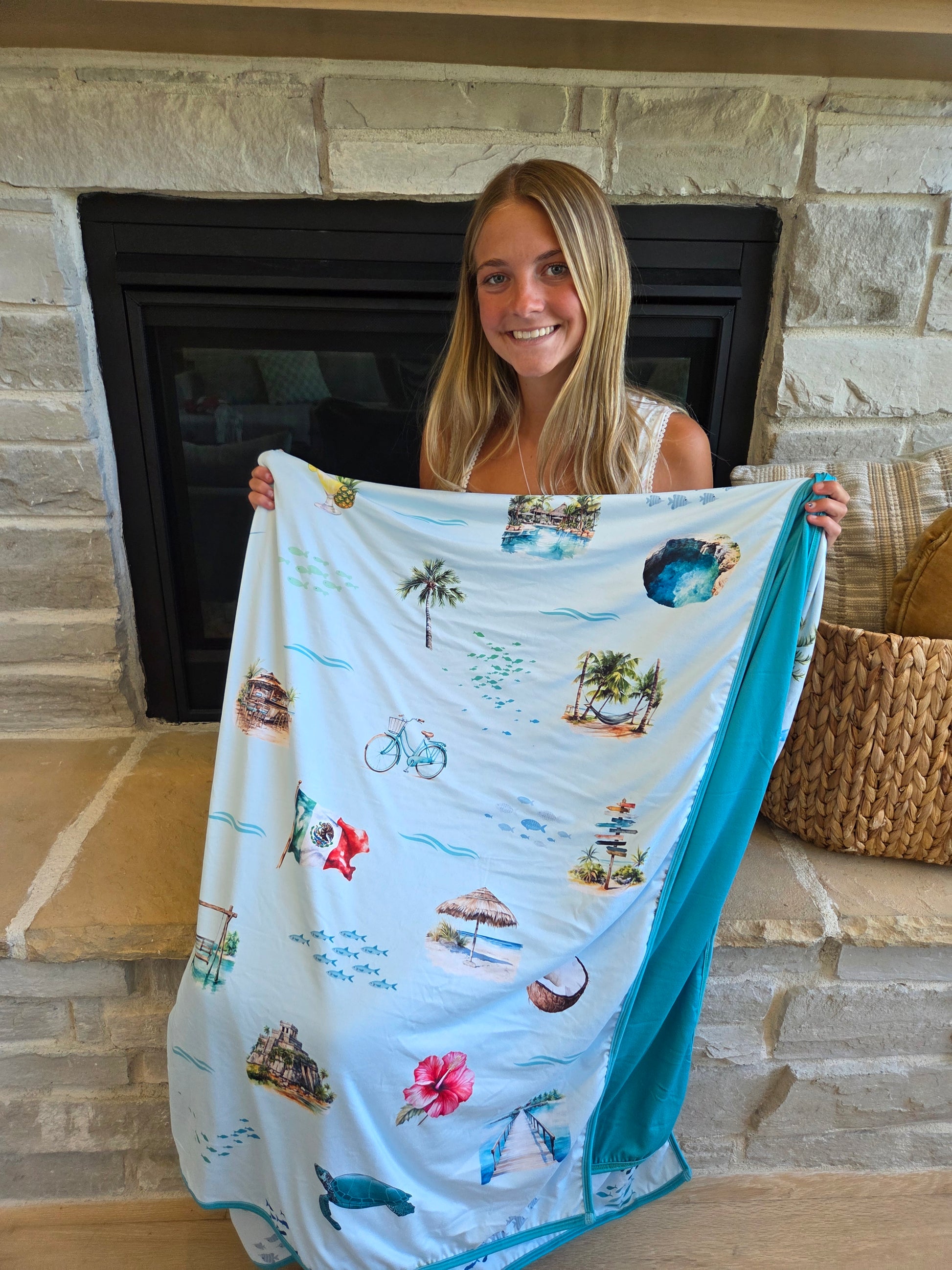 From turquoise oceans to hidden cenotes, delicious food, and unforgettable adventures—snuggle up in your vacation memories. This blanket makes the perfect souvenir from your trip, or a fun way to announce an upcoming getaway!