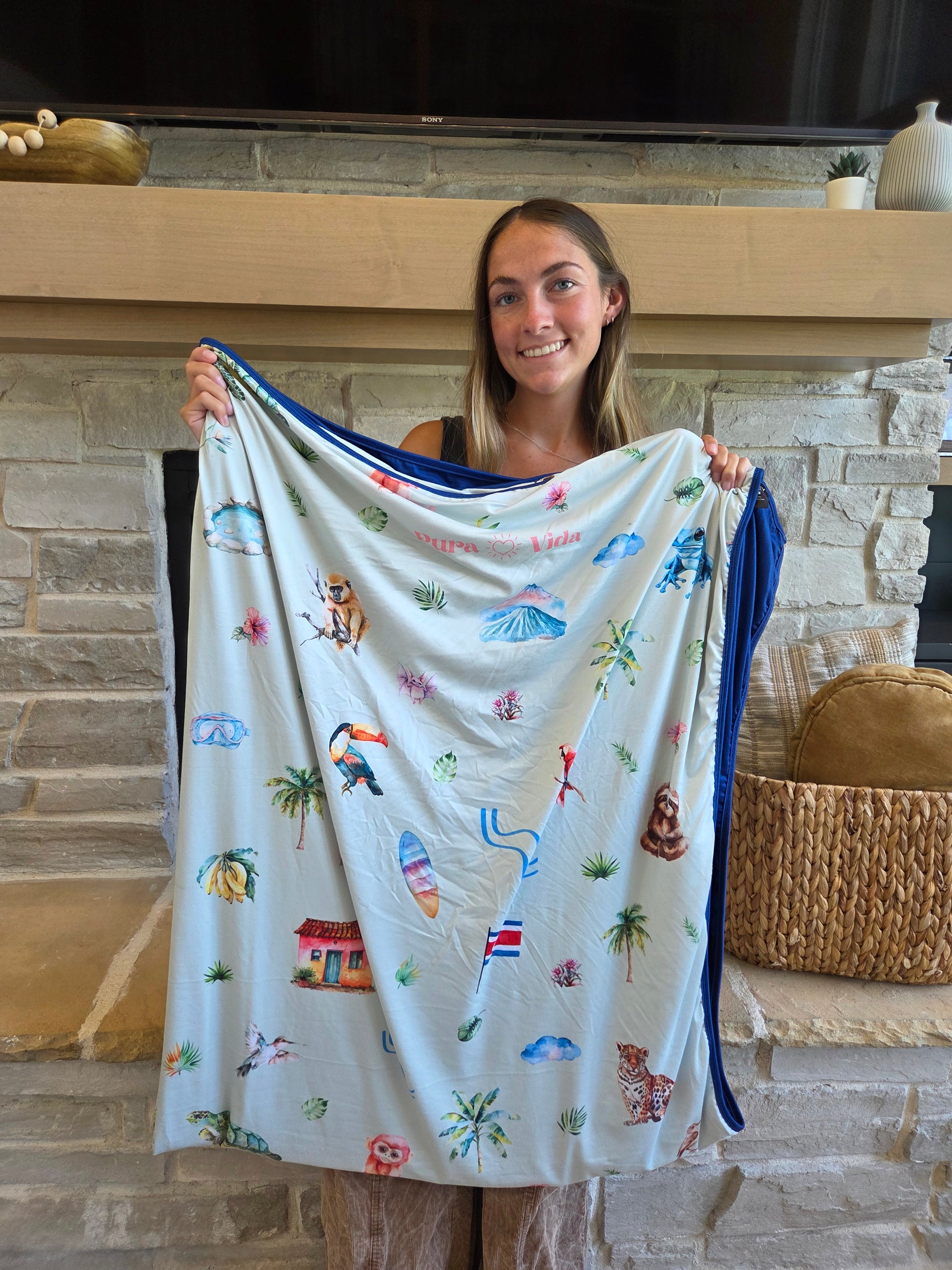 From lush rainforests to breathtaking volcanoes, colorful wildlife, and pura vida adventures—snuggle up in your vacation memories. This blanket makes the perfect souvenir from your trip, or a fun way to announce an upcoming getaway!