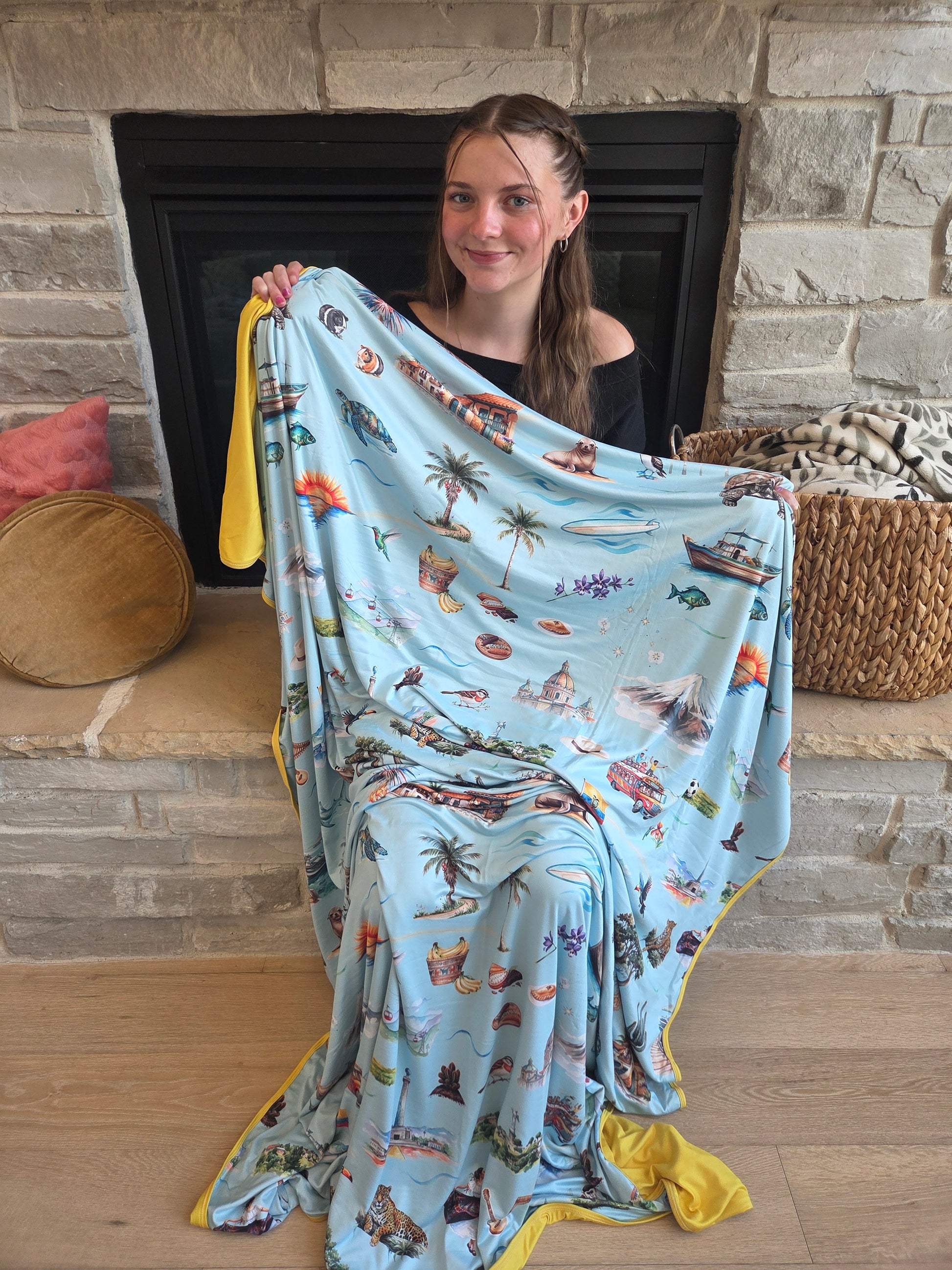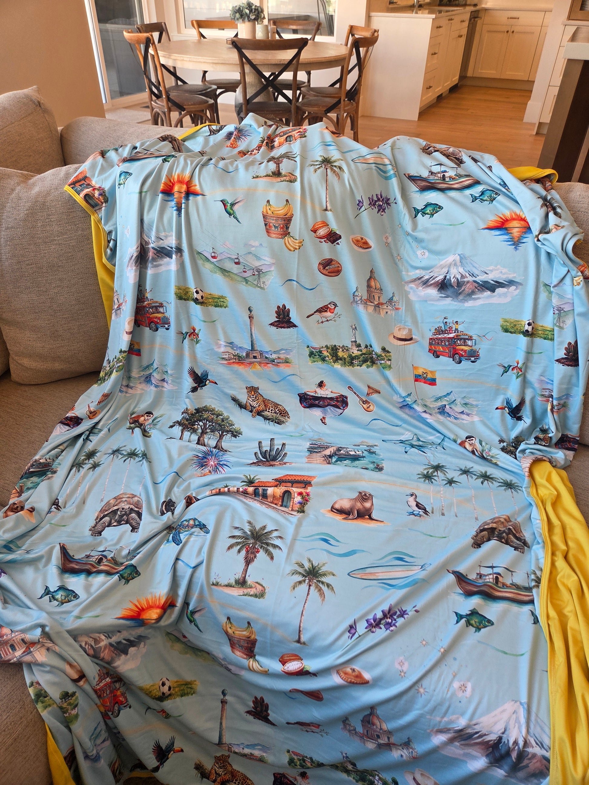 Perfect for travelers, families, and anyone connected to Ecuador, this blanket is a cozy keepsake filled with memories, culture, and adventure.