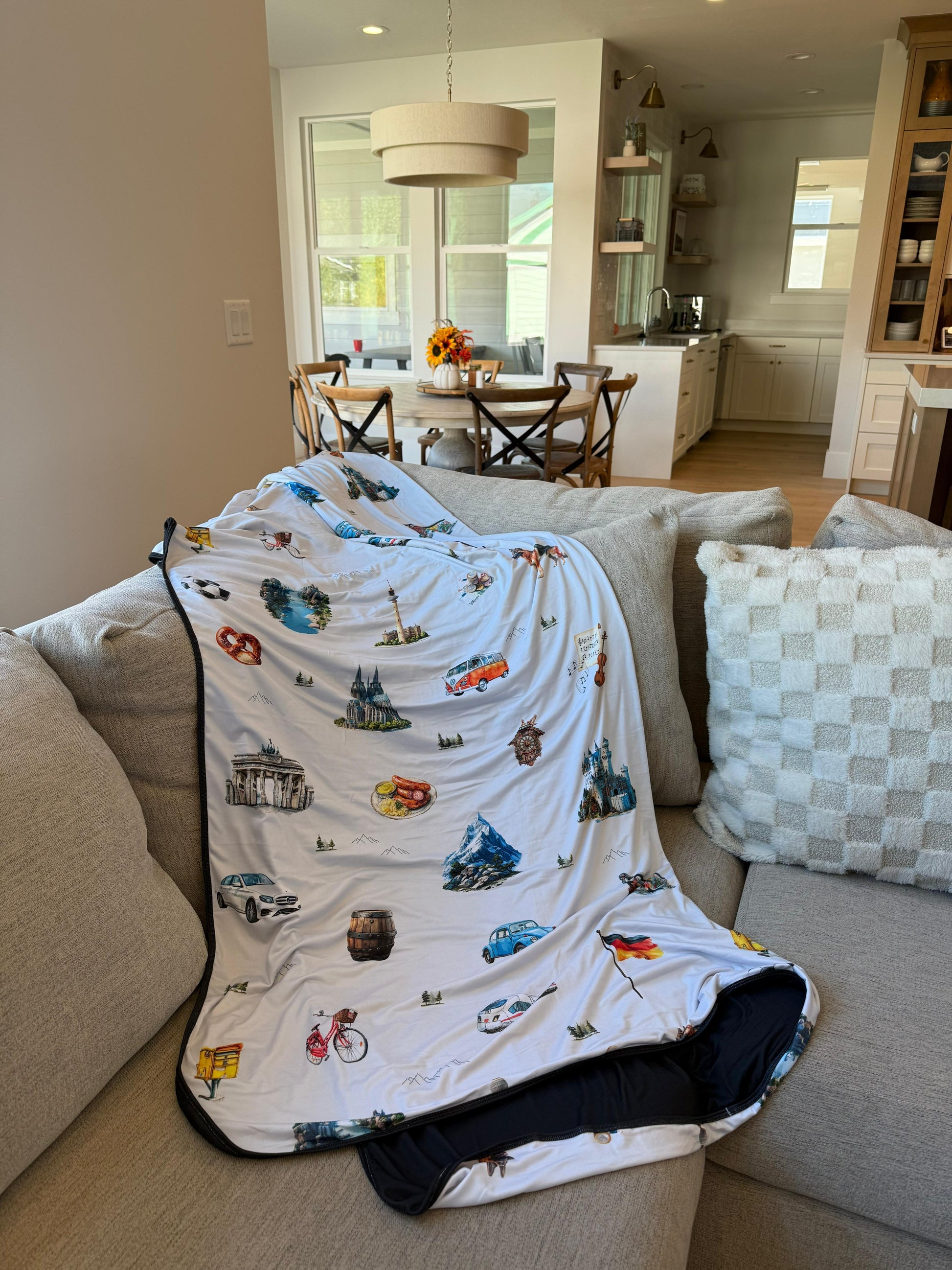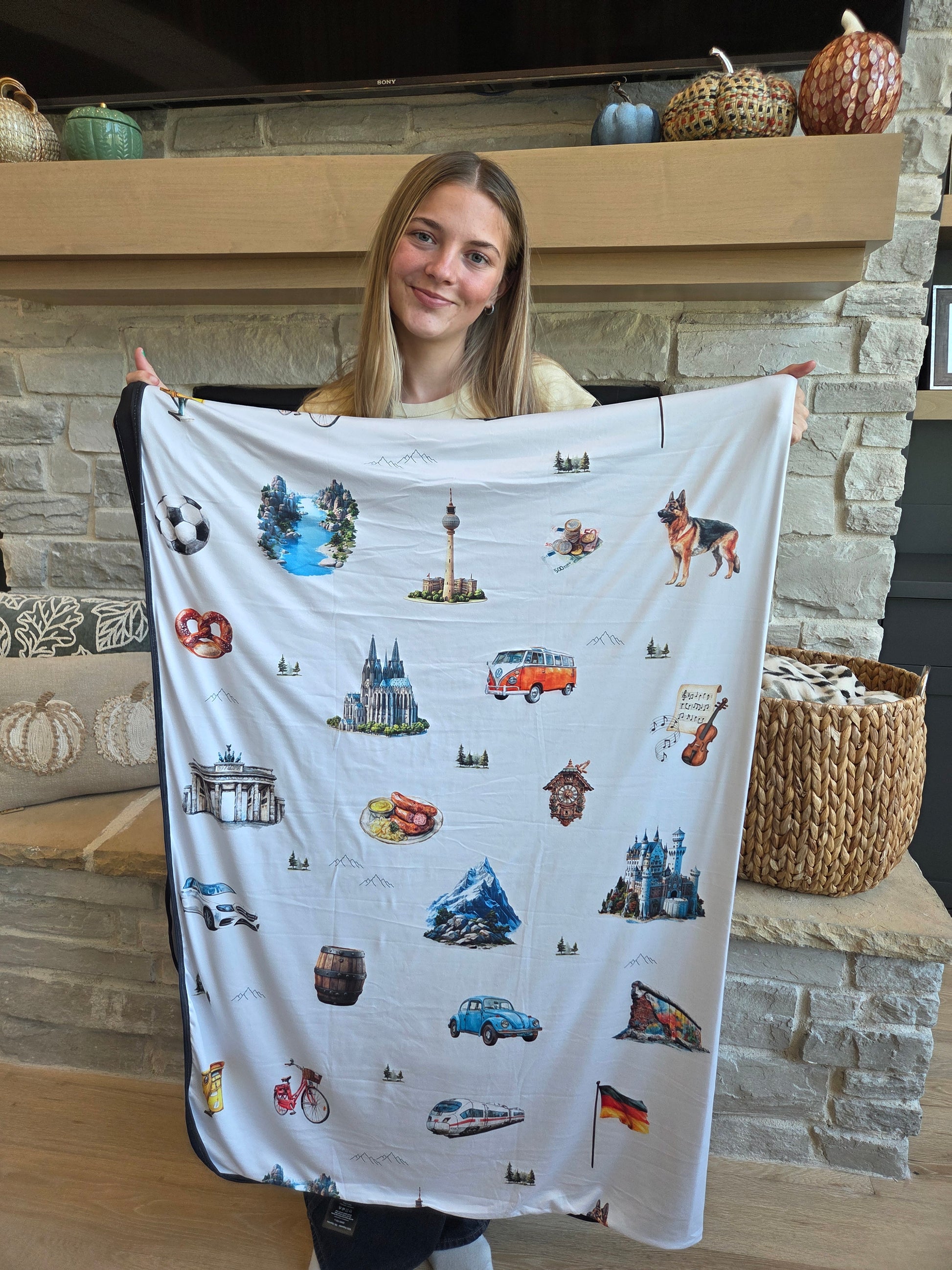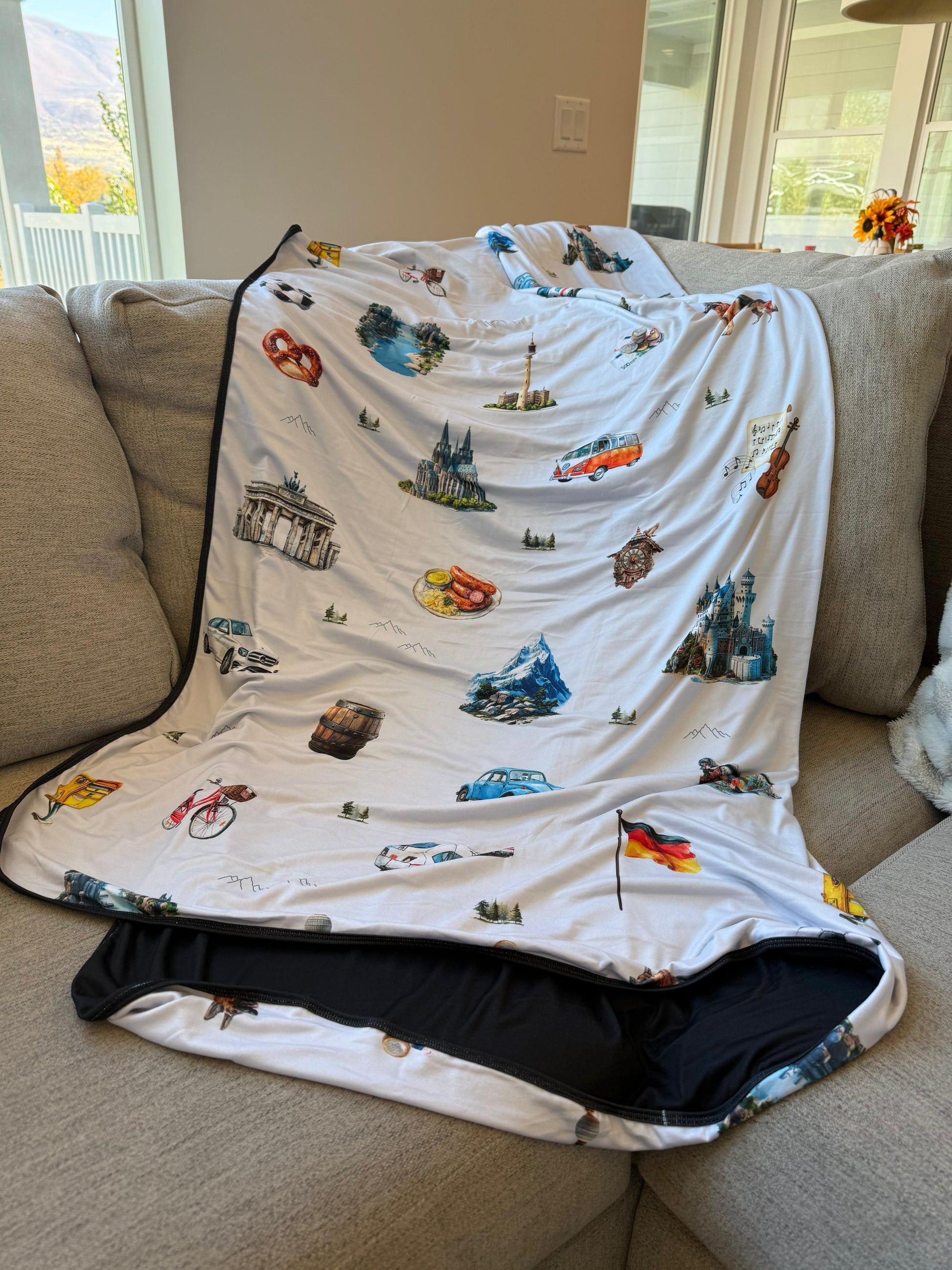 Journey to Germany with this lightweight blanket! Germany is rich in history, go explore for yourself. Ride in cool new cars or cool old cars, or jump on the train - see some of the world's most known architecture sites, eat some delicious food, and make friends and memories!
