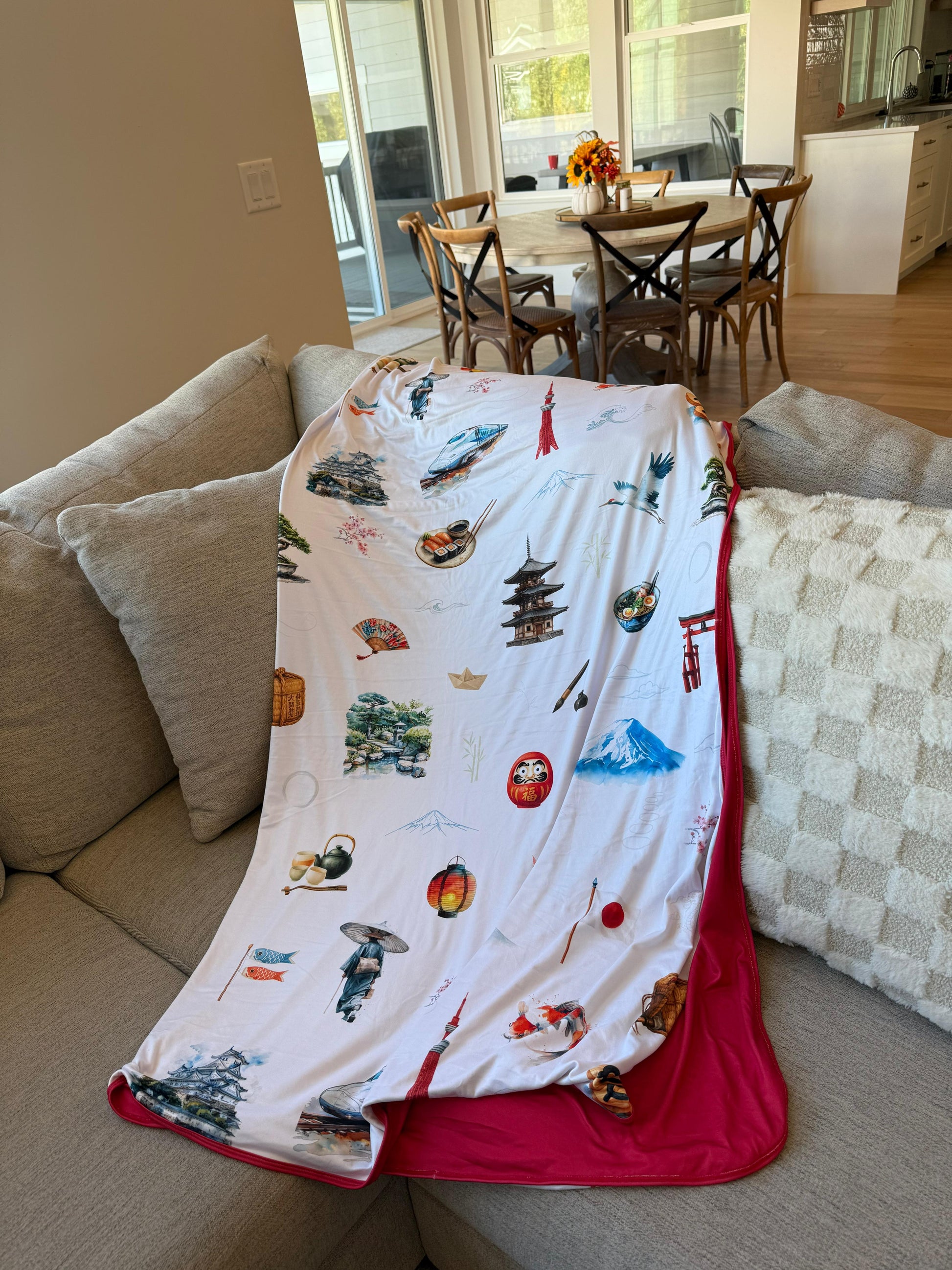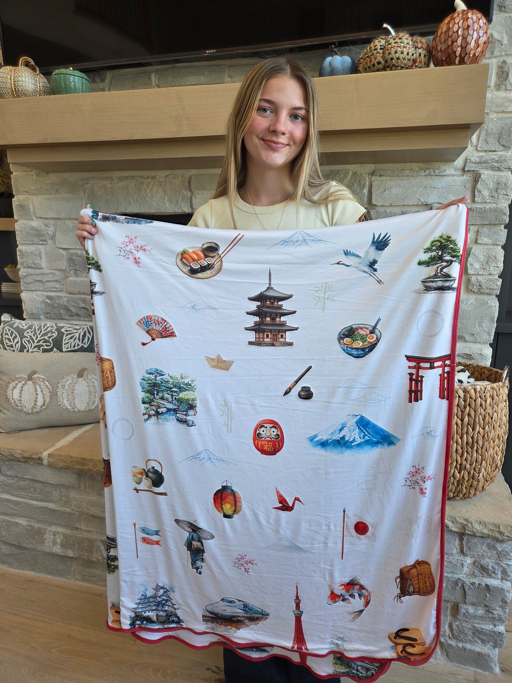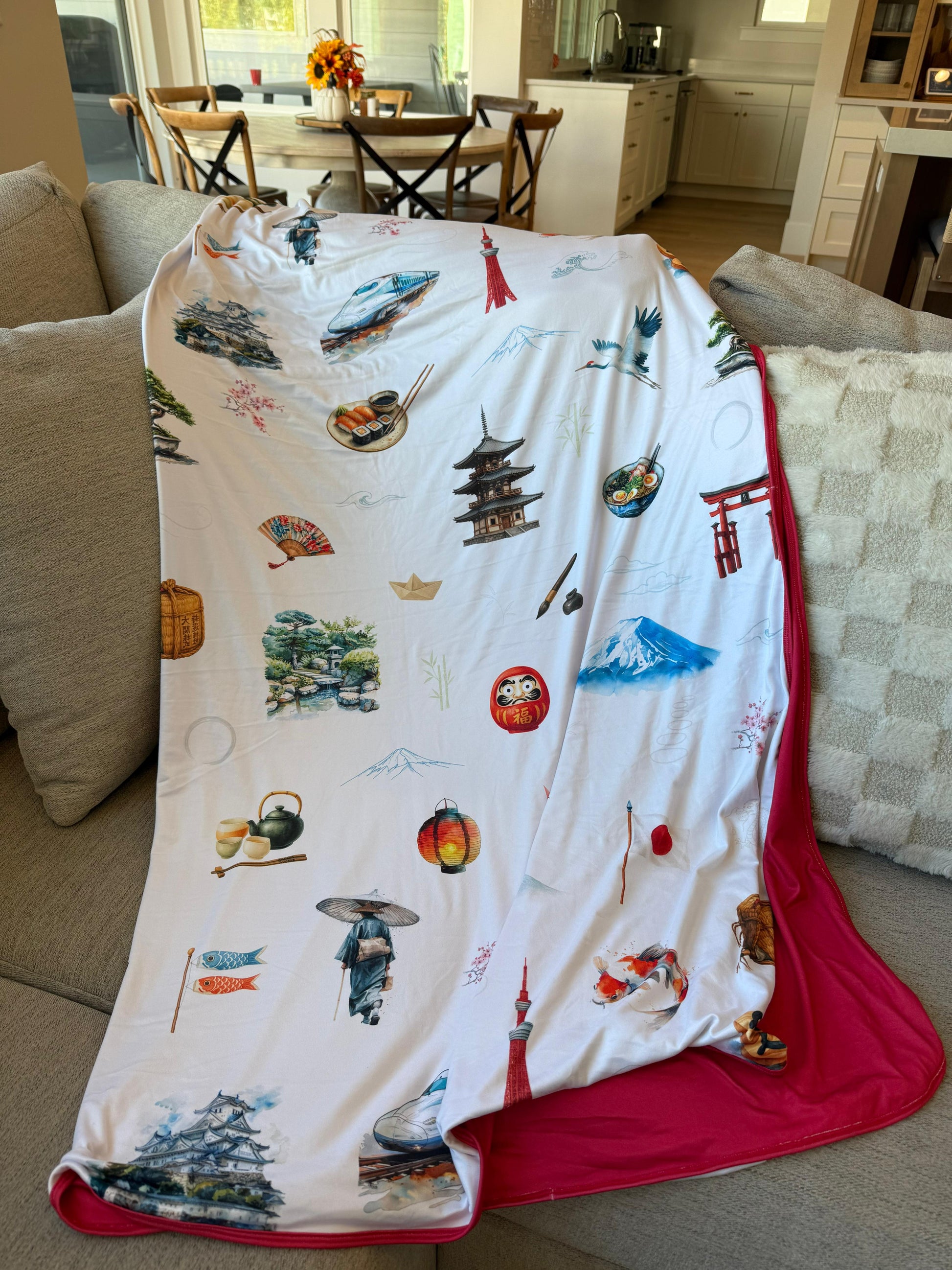 Journey to Japan with this lightweight blanket! Take the fastest bullet train around to see all the sites from Mt Fuji to cities, ocean shores to buildings. Japan is clean and cool and worth remembering long after your trip!
