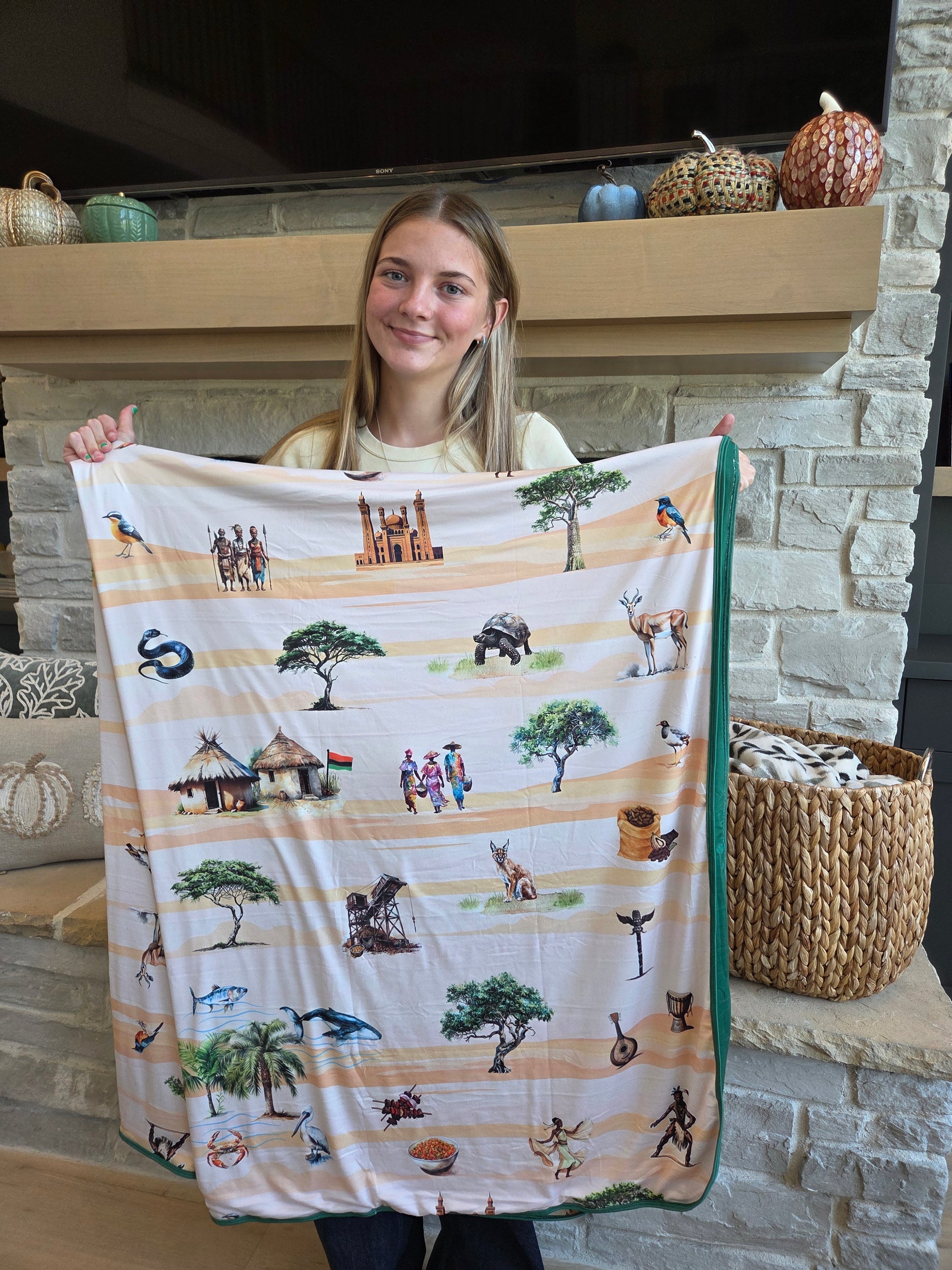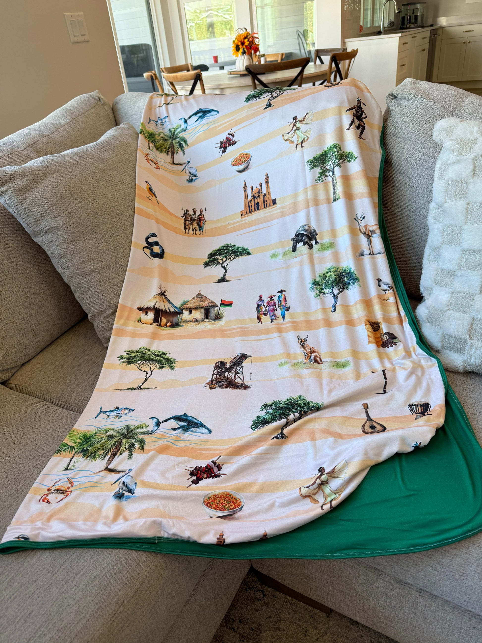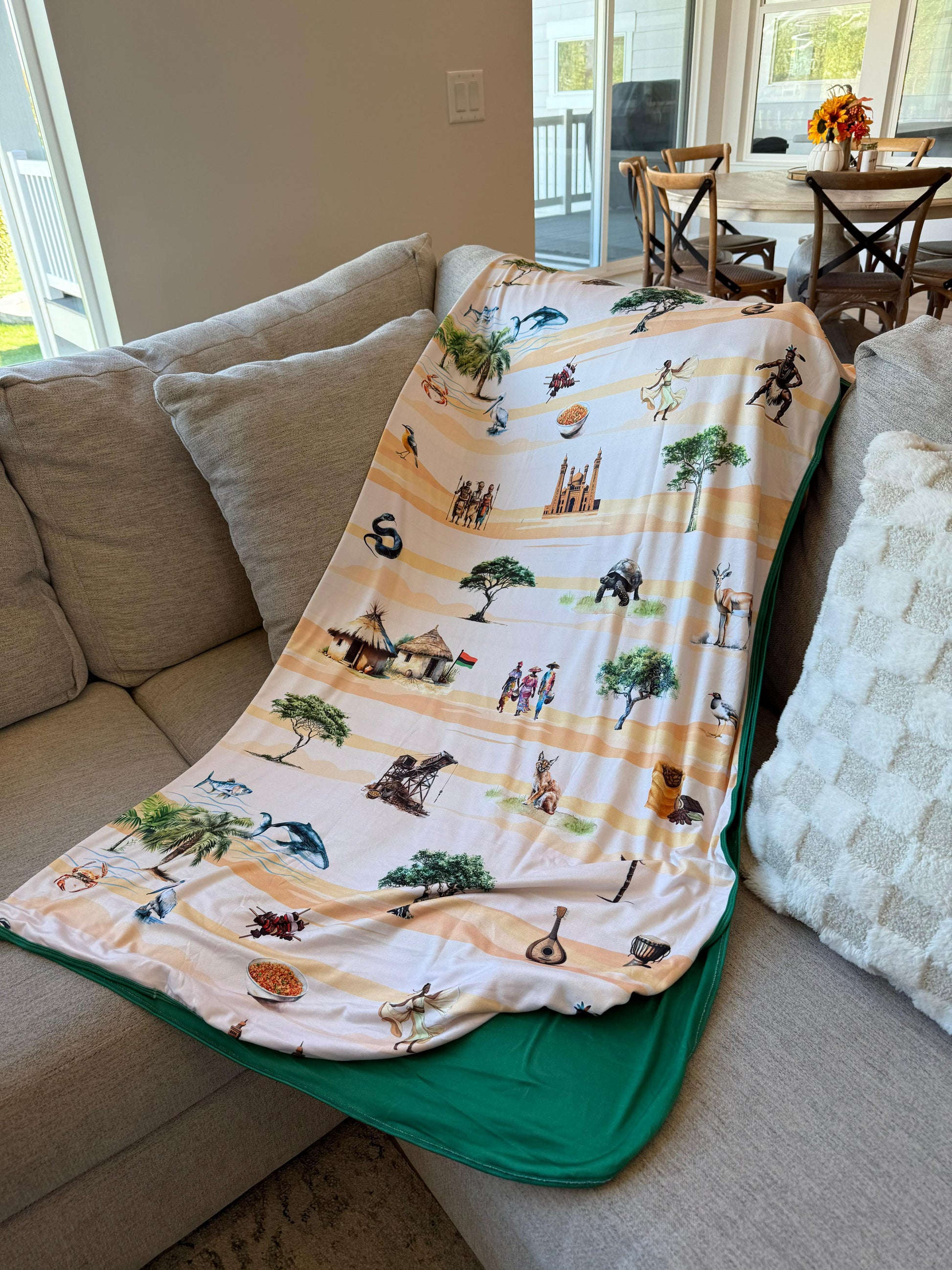 Journey to West Africa with this lightweight blanket! From deserts, to ocean, to vibrant culture and music, experience the rich history and beauty of Africa!